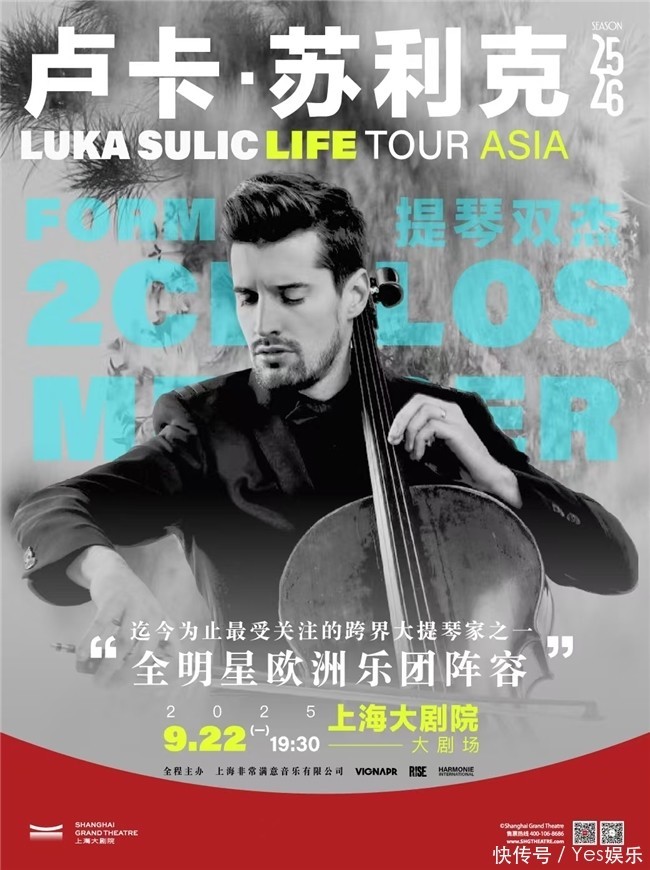 继欧洲巡演之后,亚洲乐迷终于有机会近距离欣赏到世界大提琴天才卢卡·苏利克非凡的音乐才华,而上海站也是他单飞后首次回到中国。在《LIFE TOUR》上海站,卢卡将携手欧洲全明星乐团现场演绎原创作品及经典曲目,古典底蕴与现代灵魂的完美融合,将为观众带来一次难得的跨界音乐盛宴。这次的全明星阵容包括:奥地利小提琴家本杰明·齐尔福格(Benjamin Ziervogel)、欧洲新生代中提琴翘楚约泽夫·比萨克(Jozef Bisak)、奥地利小提琴家拉斐尔·卡斯普里安(Raphael Kasprian)、奥地利大提琴家(Thomas Wiesflecker)、钢琴家西蒙·克拉沃斯(Simon Kravos)。